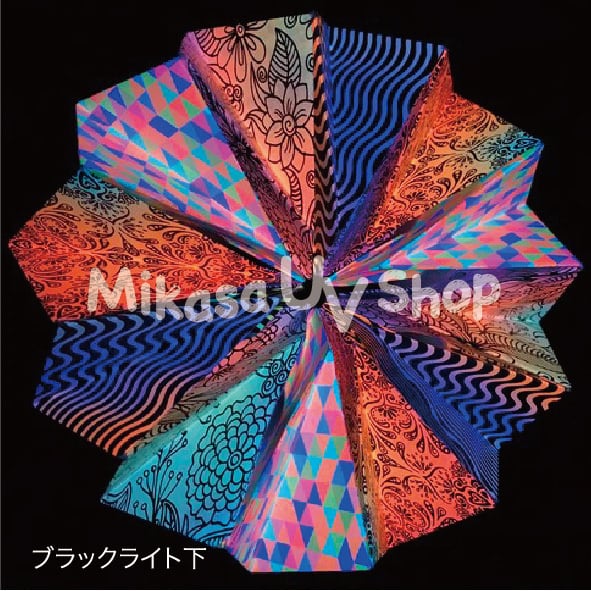 暗い所でブラックライトを当てると幻想的に発光し、明るい所でも鮮やかな蛍光色と